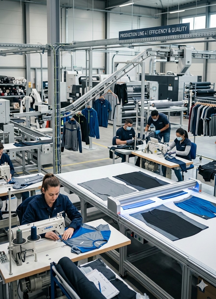 Mid-batch QA and skilled operators guarantee seamless fit and consistent output, hallmarks of leading apparel manufacturers in Pakistan.