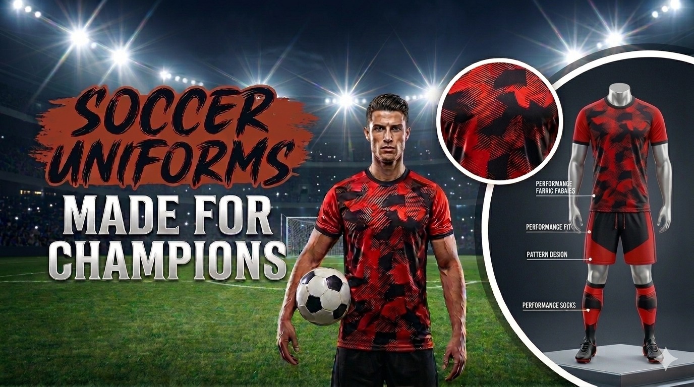 Professional soccer uniforms crafted with moisture-wicking fabric and modern designs to keep your team confident from kickoff to final whistle, ensuring peak performance.